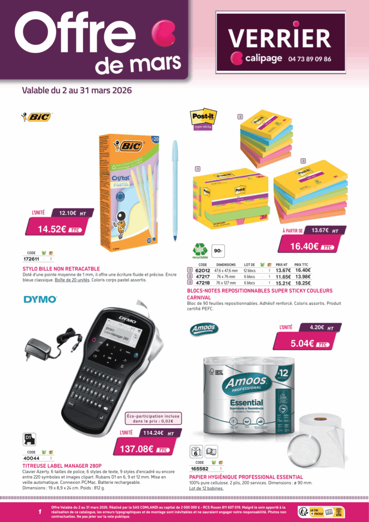 BureautiqueMobilierPapeteriePromotion Promotion du moment ! 14 mai 2024 VERRIER Contactez-nous au 04.73.89.09.86 ou par email contact@verrier-michel.fr